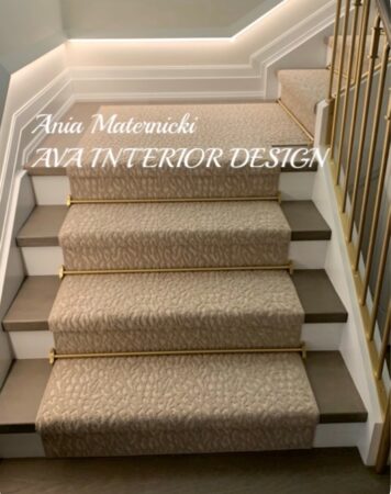 The result is a beautifully finished staircase with a custom metal railing, warm wood handrail, elegant brass detailing, and a soft runner that adds both comfort and texture. Each element was carefully chosen to enhance not just the staircase itself, but the experience of moving through the home.
